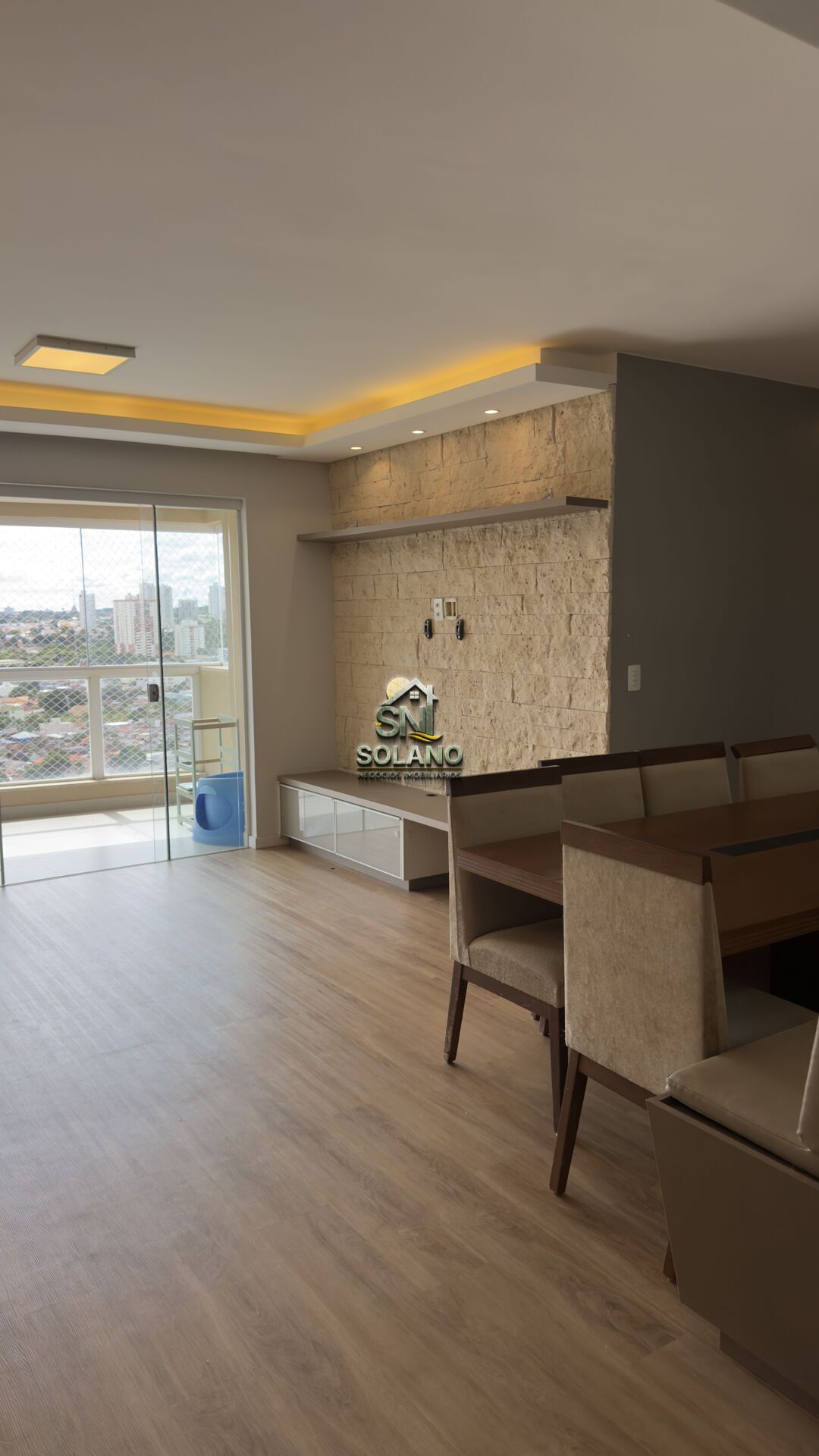 Salas integrada com varanda e Sala de Jantar.