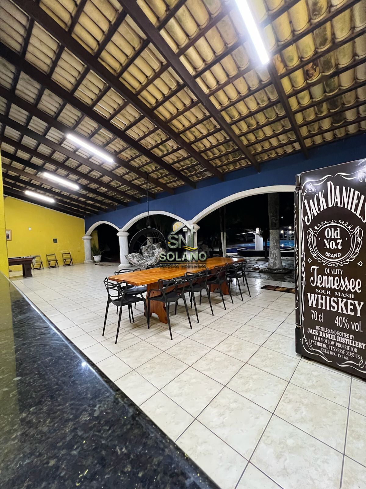 Area de laser com (200 m²) coberta, mesa de sinuca, balanço suspenso nicho