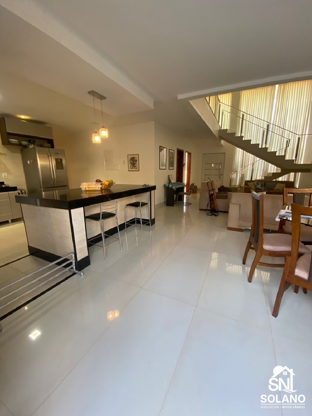 1 sala ampla com cozinha aberta no estilo americano